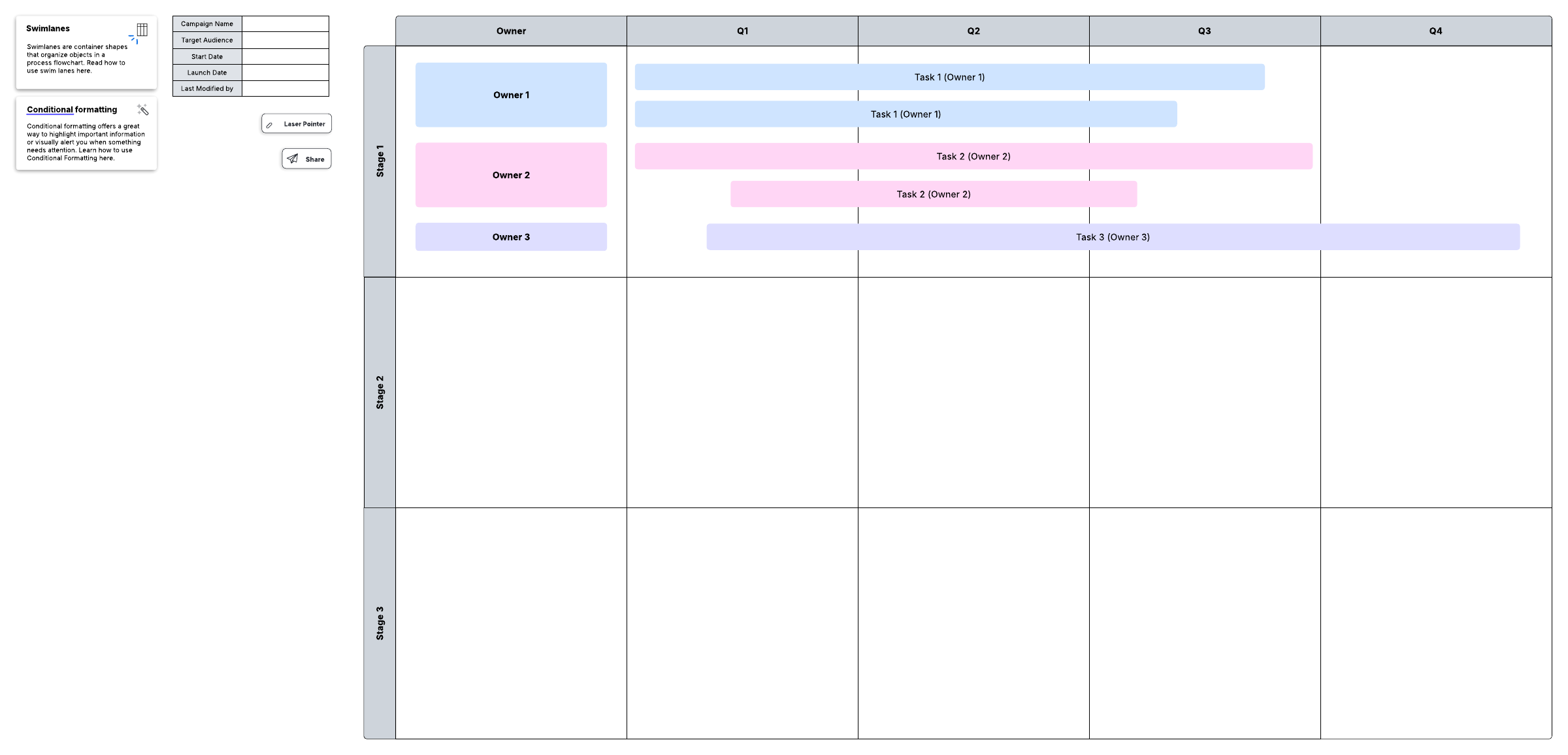 Open this template and add content to customize this Gantt chart with quarters diagram to your use case.