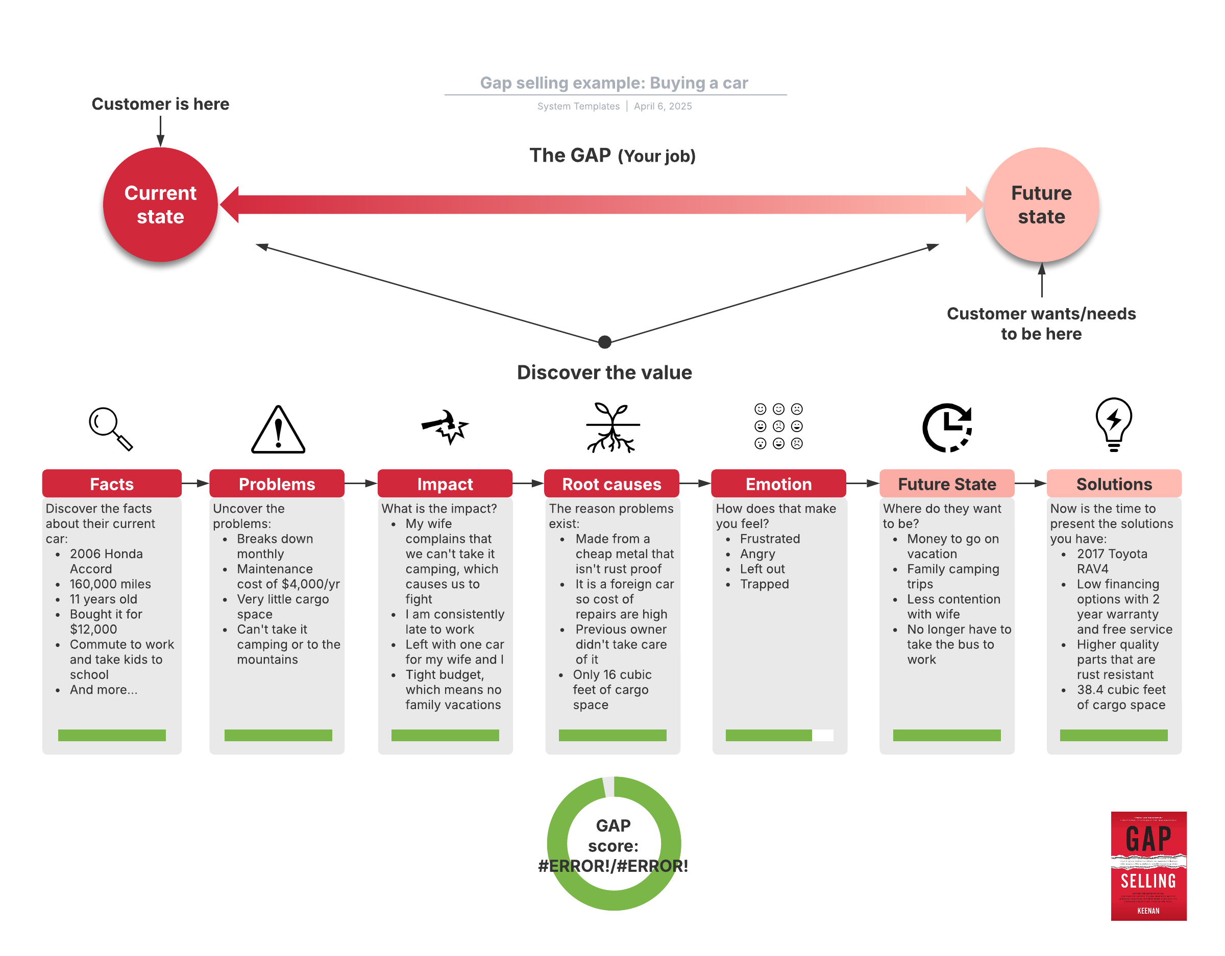 Open this template to view the GAP Selling Example for sales that you can customize to your use case.