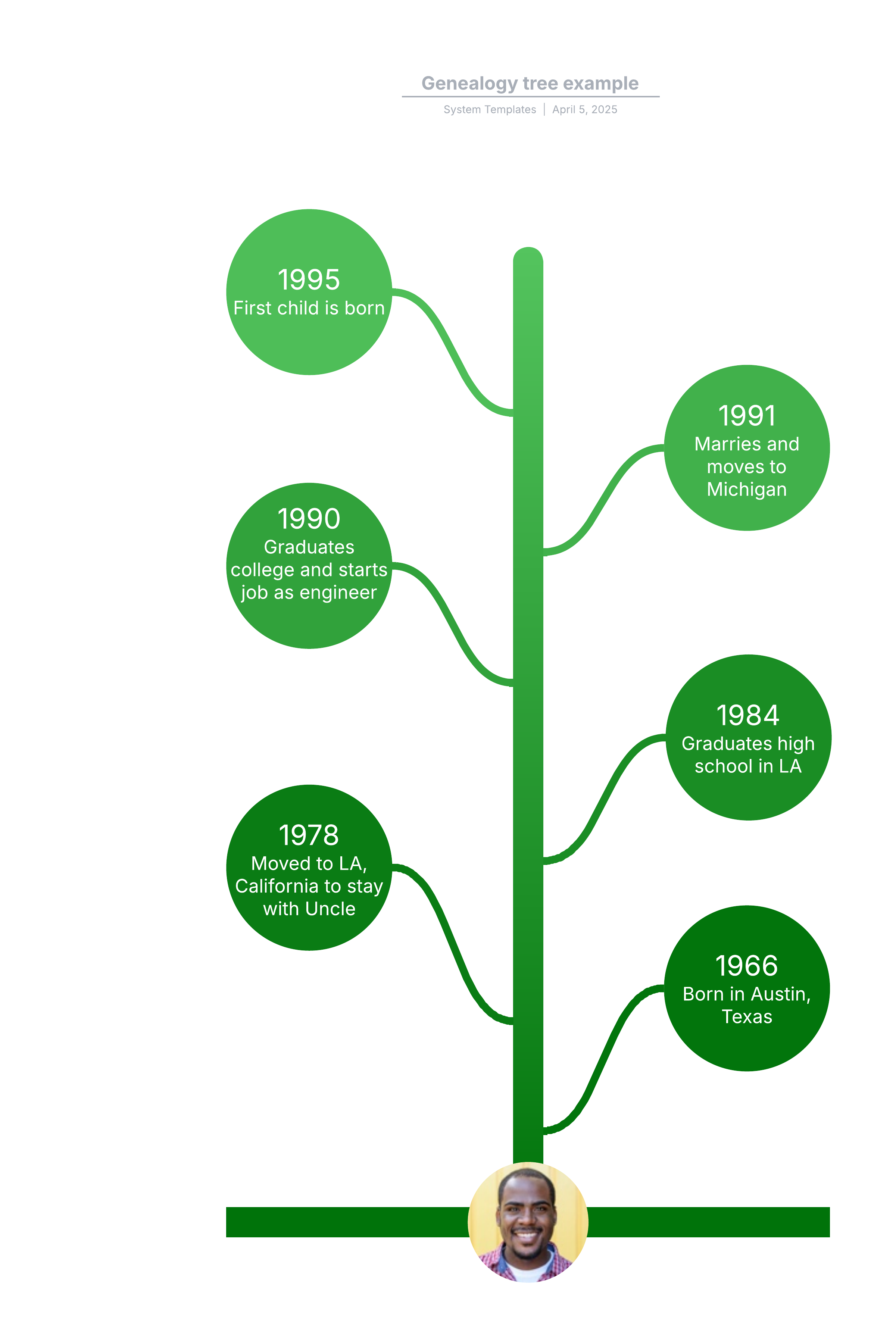 Open this template to view a detailed example of a genealogy tree chart that you can customize to your use case.