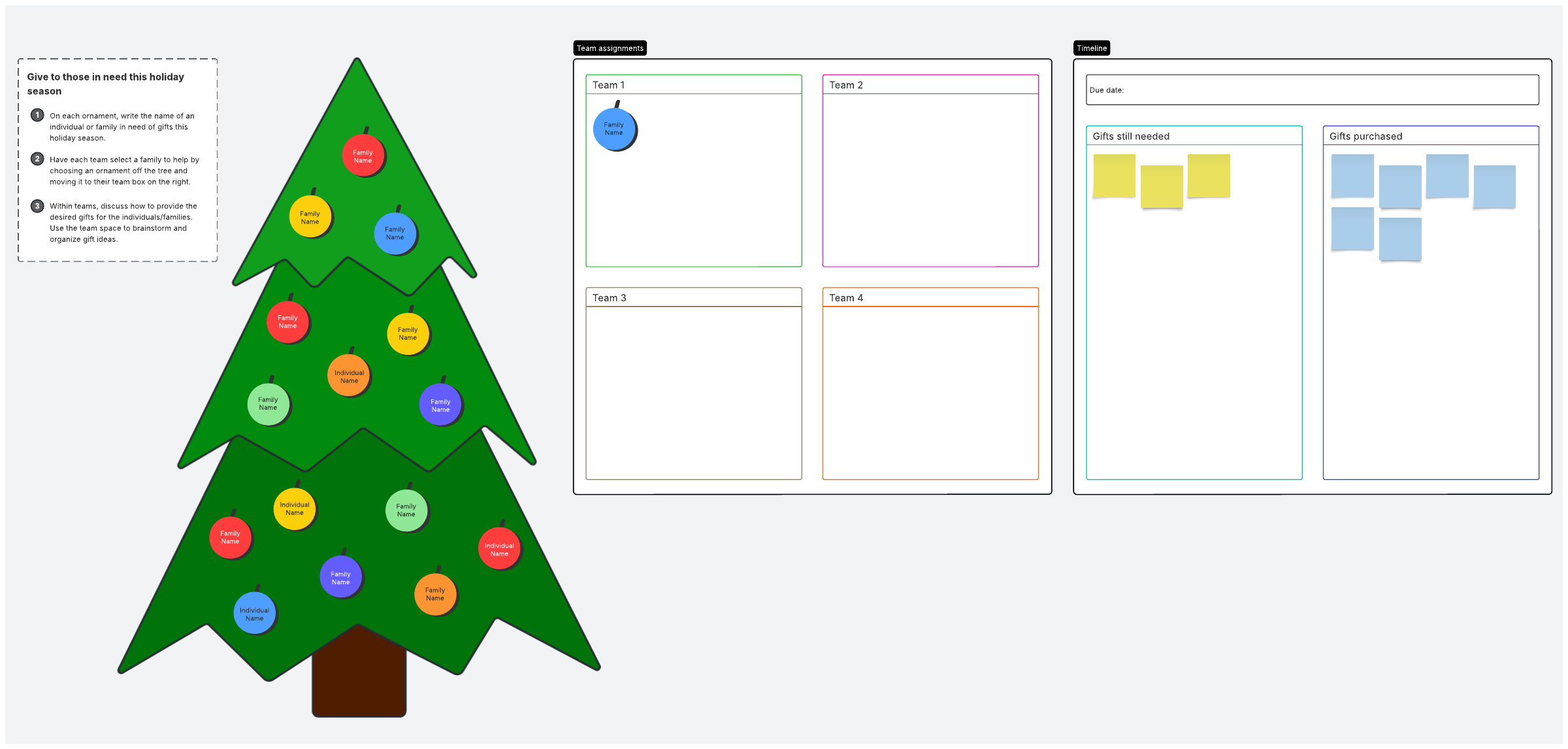 Come together as a team to help those in need this holiday season with this holiday giving tree template.
