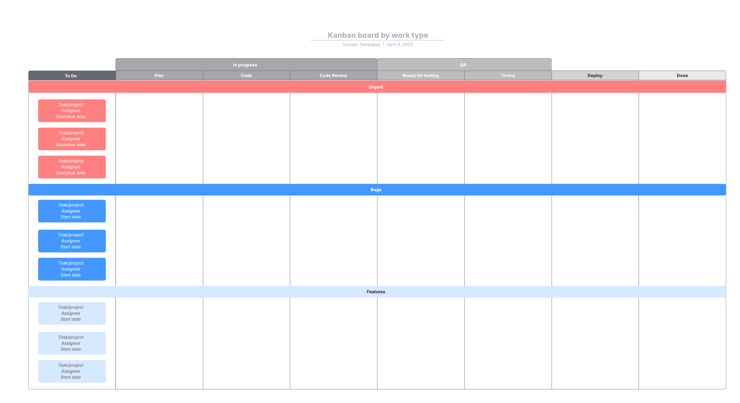 This Kanban board by work type diagram template can help you: