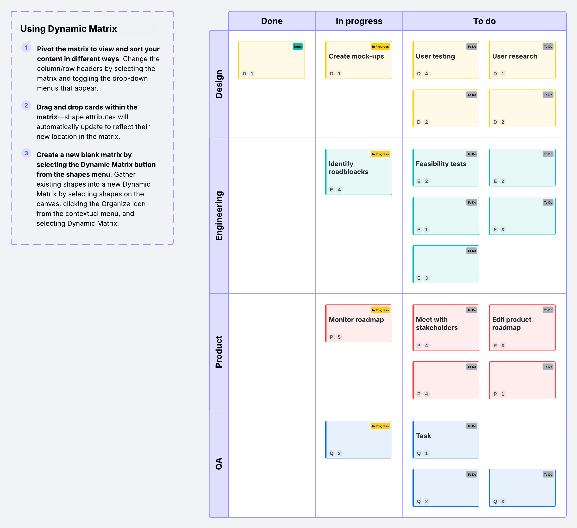 Streamline agile planning by using the Dynamic Table feature to create a powerful Kanban board. With this template, you can visualize necessary tasks in different views, organize your work, limit the amount of work-in-progress, and boost your team's overall efficiency.