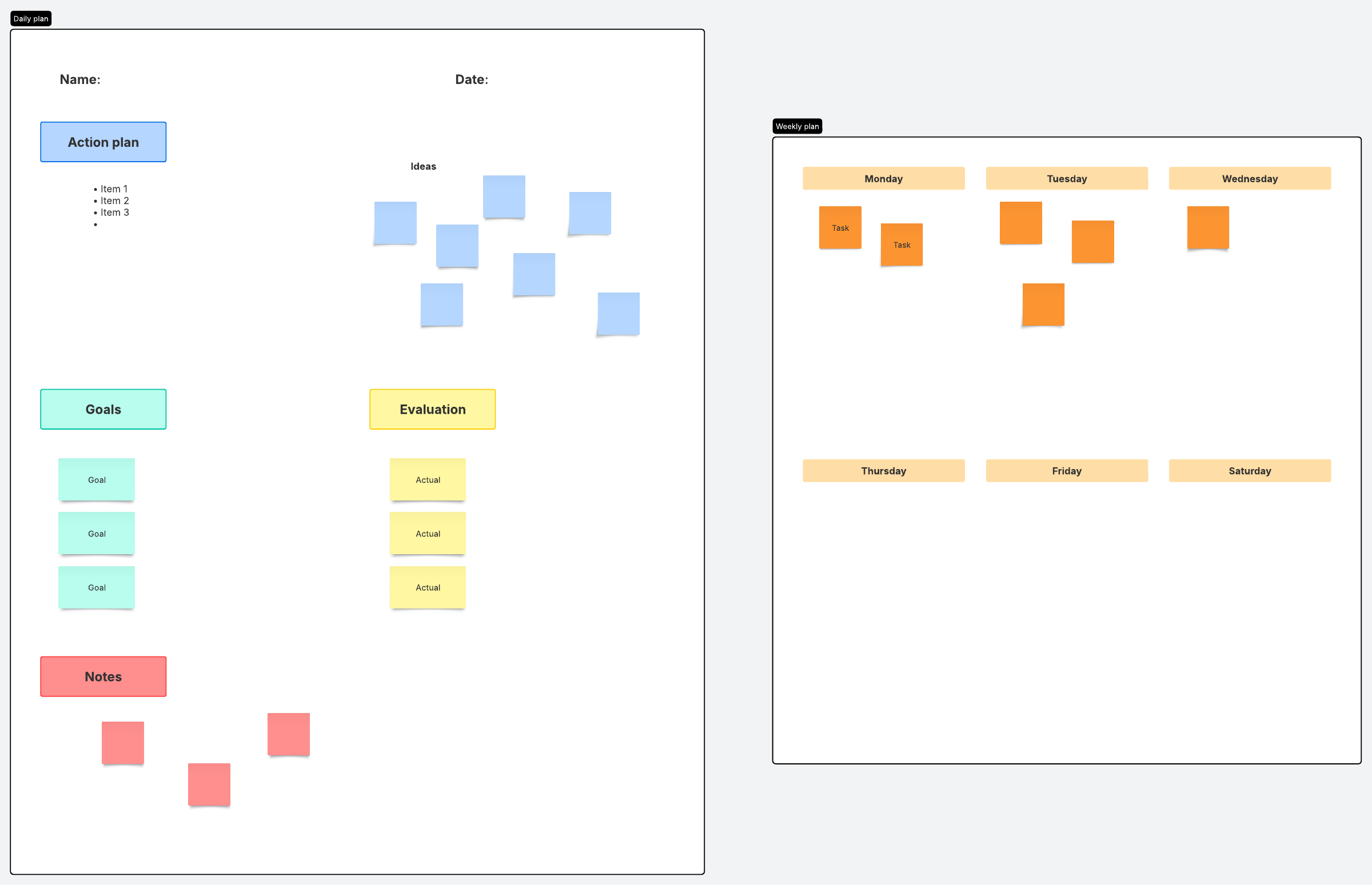 Our customizable Lesson plan template allows you to brainstorm, record, edit, and store your lesson plans all in one place. Easily create organized plans for future lessons while keeping a record of what you taught and when. The Lesson plan template has plenty of space for you to create detailed notes about every aspect of your teaching, from your action plan to evaluations to assignments, so that you can keep track of the progress of your personal goals and the progress of your attendees or students.