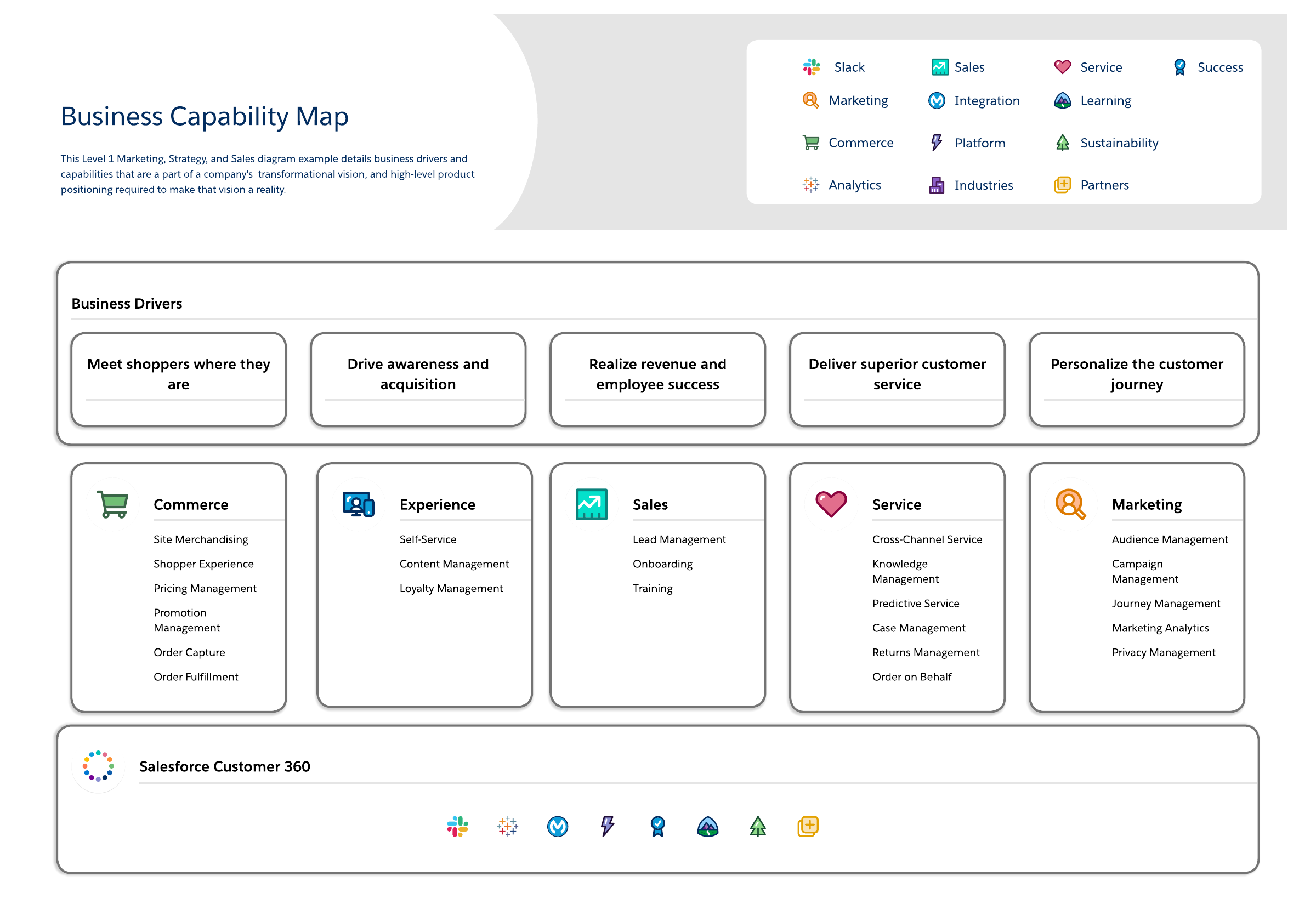 -Document capabilities that are a part of a company's transformational vision. - Visualize high-level product positioning required to make the vision a reality.
