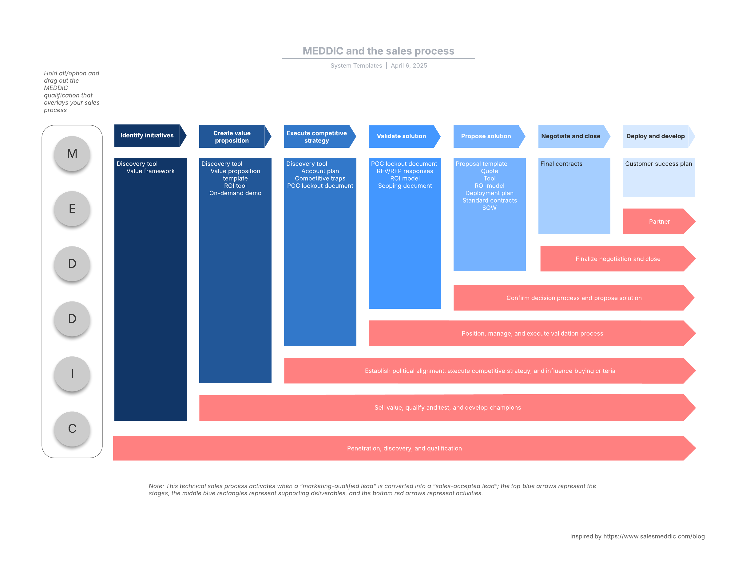 Open this template to view a detailed example of a MEDDIC and sales process template that you can customize to your use case.