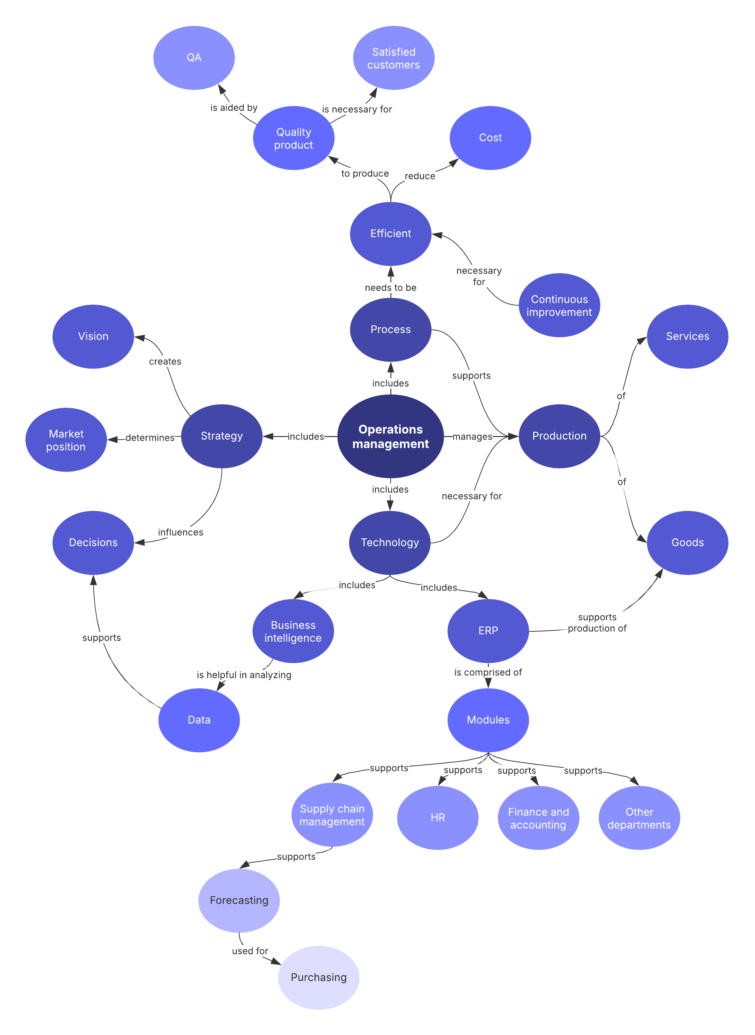 -Visually represent relationships between concepts and ideas related to operations management.