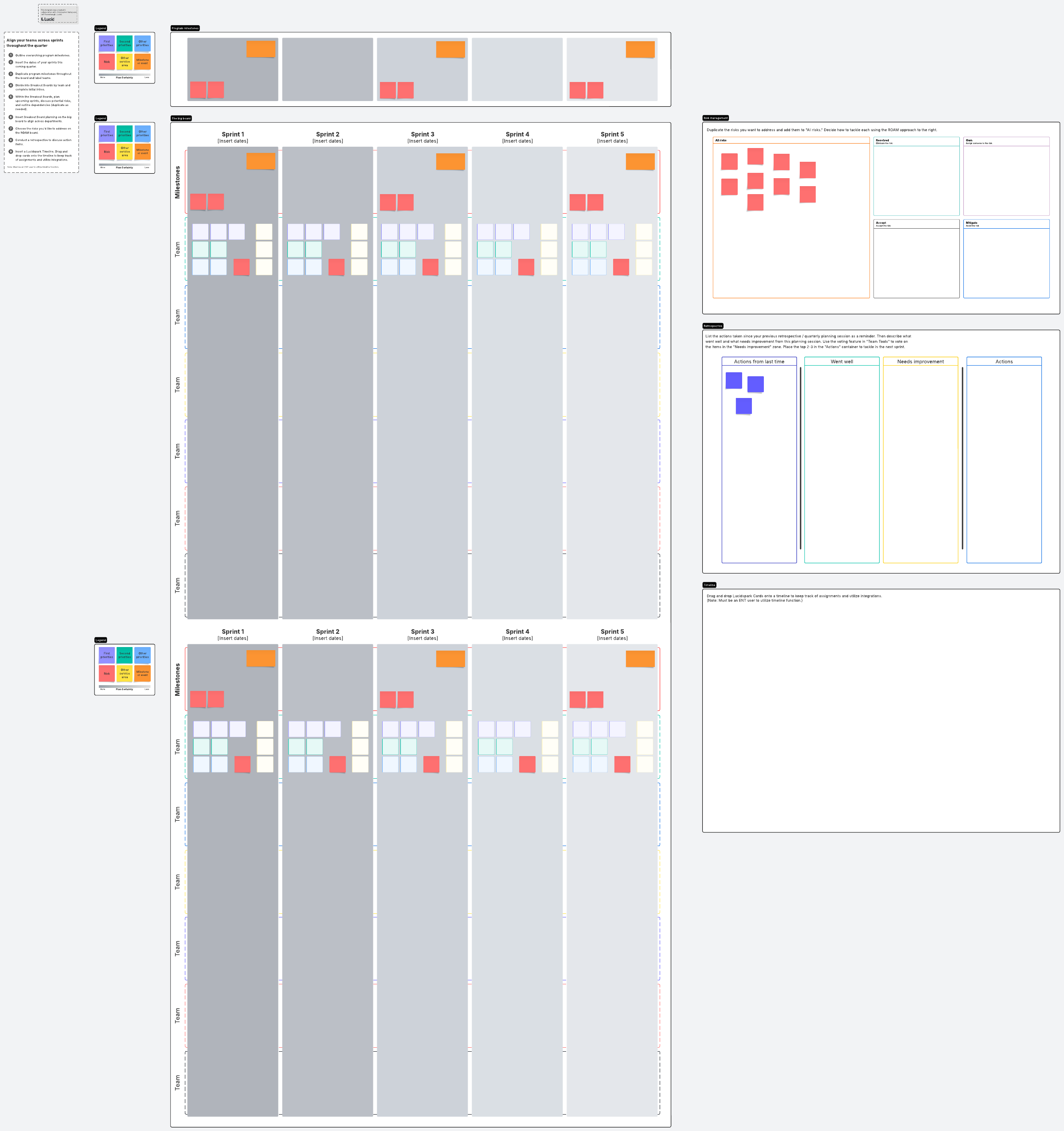 Now that you’ve finished the prep work, you’ll get everyone involved by dividing your group into Breakout Boards by team. Each team will use their board to plan upcoming sprints, discuss potential risks, and outline any dependencies. When the groups are done working, bring everyone back together and insert the Breakout Boards into the main board to get everyone aligned across departments.