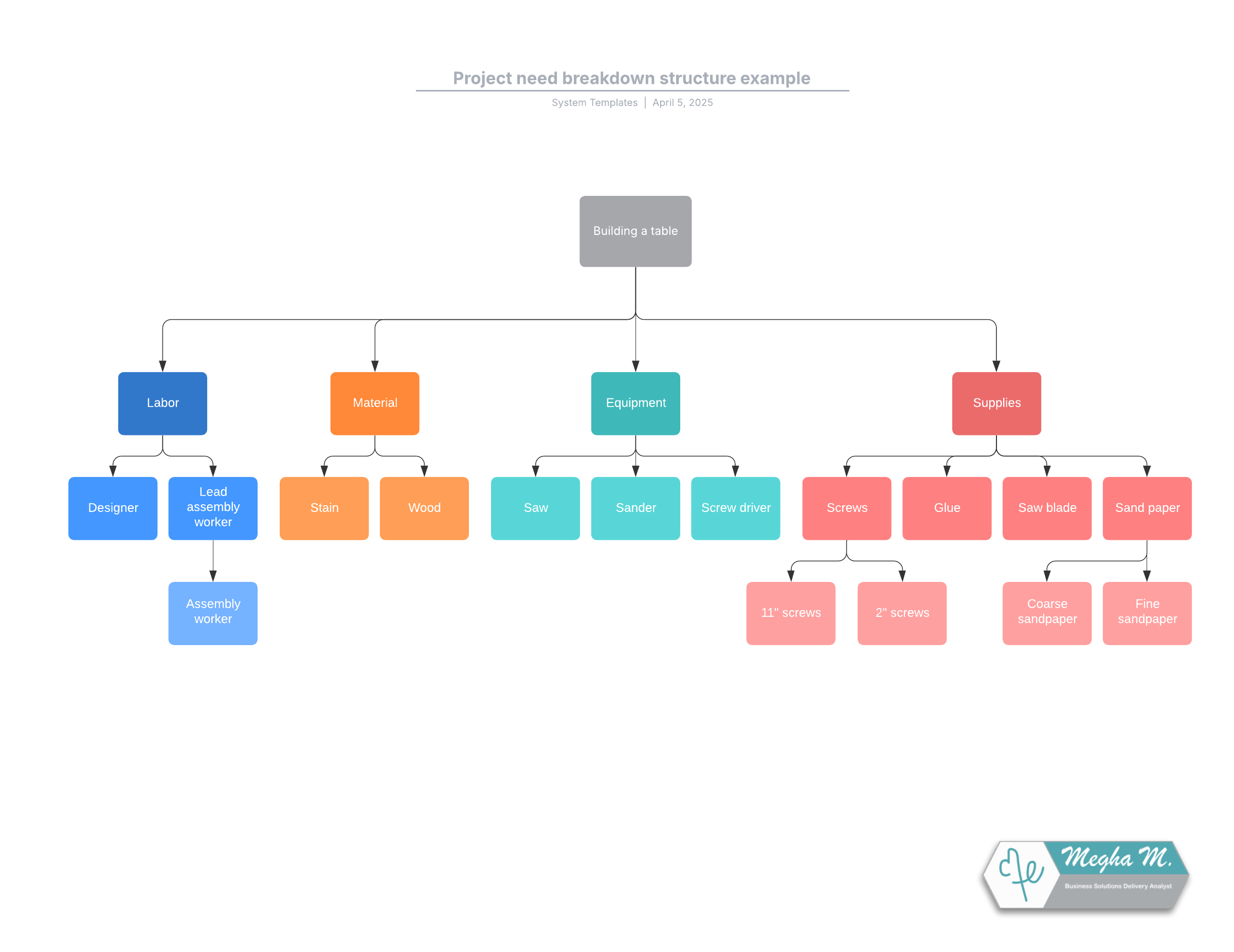 Open this template to view a detailed example of a project need breakdown structure that you can customize to your use case.