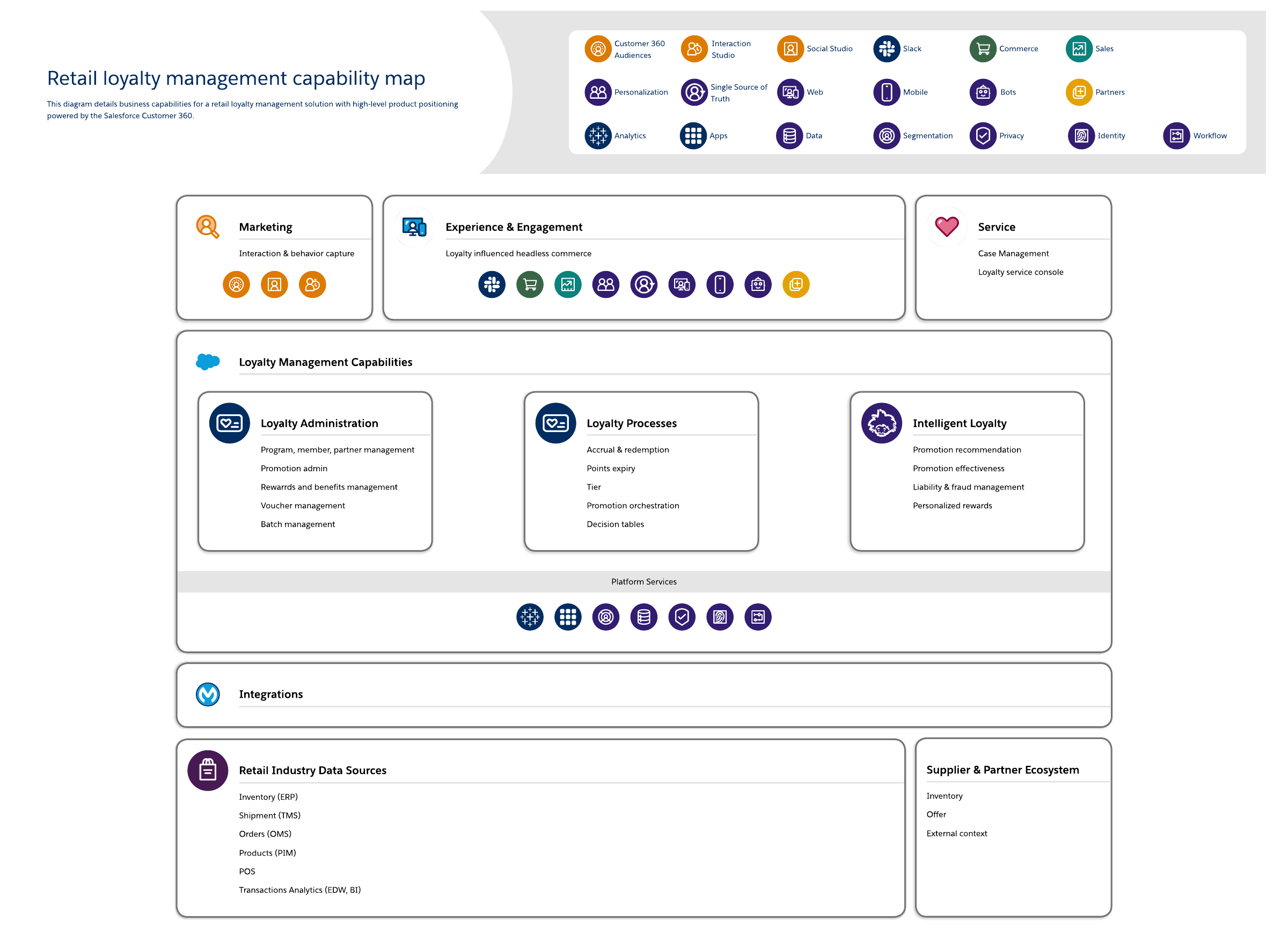 Open this template and add content to customize this Retail loyalty management capability map to your use case.