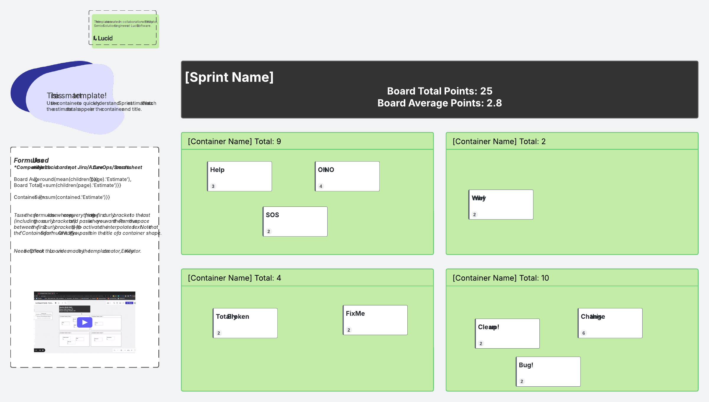 Use this Smart containers template to quickly visualize Sprint estimates.