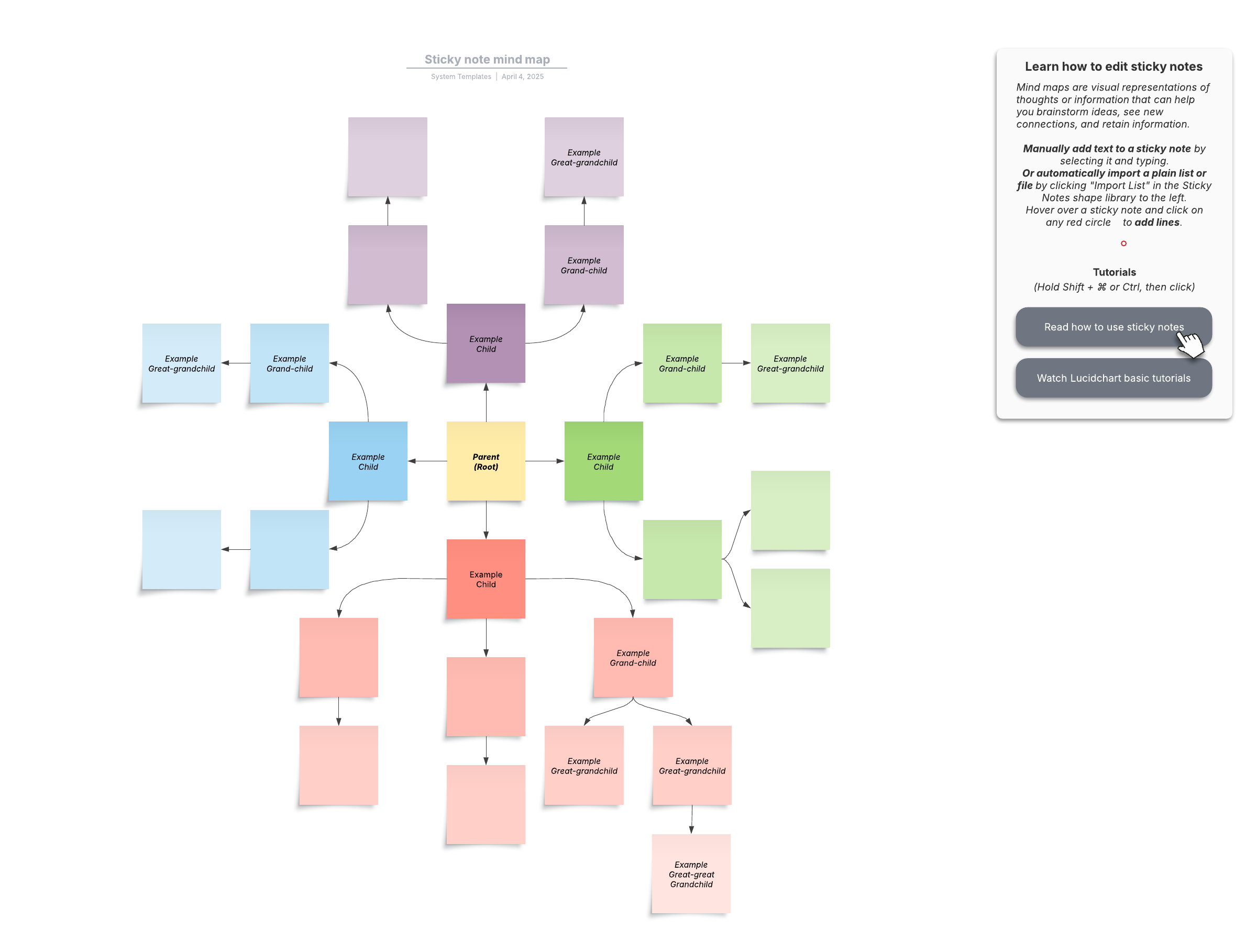 This sticky note mind map template can help you: