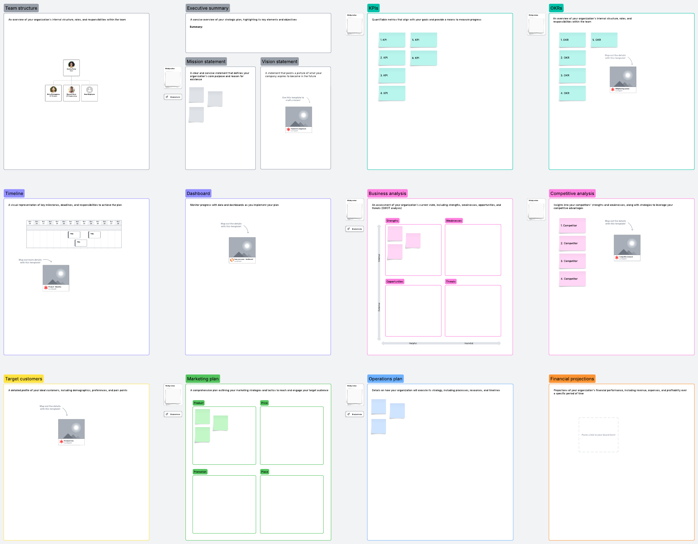 Use this template to create a visual strategic plan. Then share it with stakeholders to reach alignment.