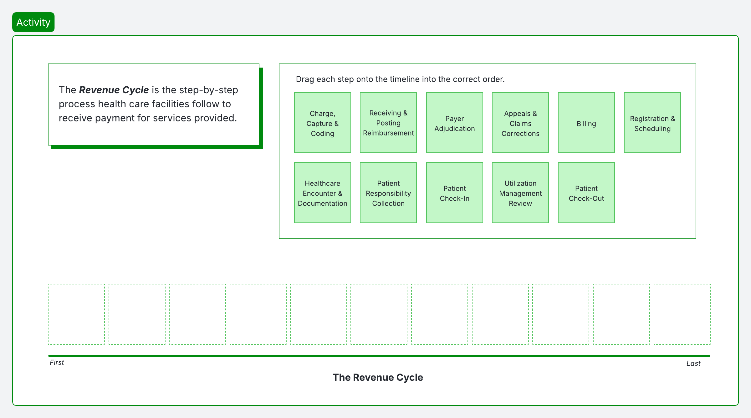 Visually map and manage every stage of the healthcare revenue cycle.