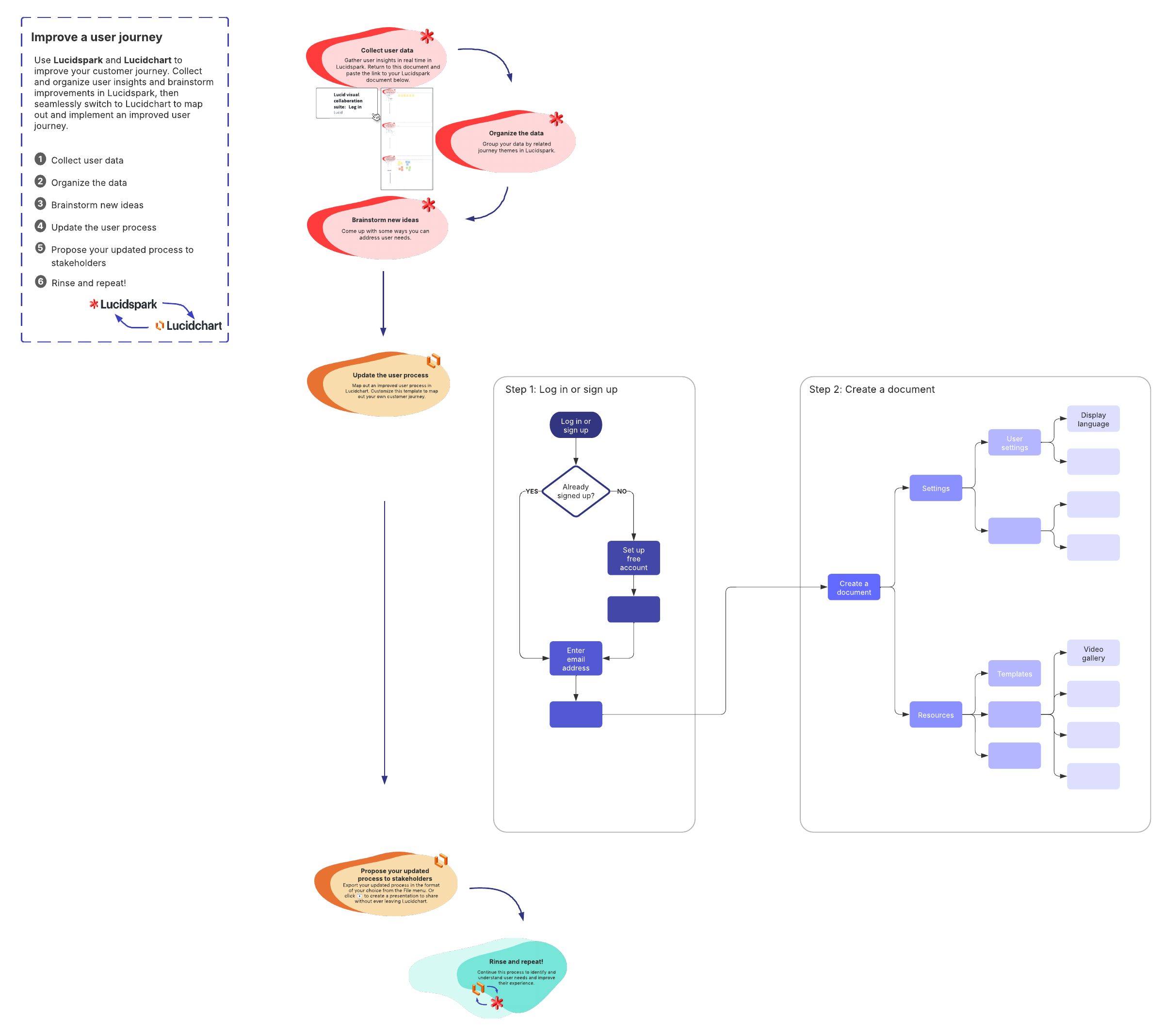 This User research and journey mapping template can help you improve your customer journey by using the Lucid Suite (Lucidspark and Lucidchart) to: