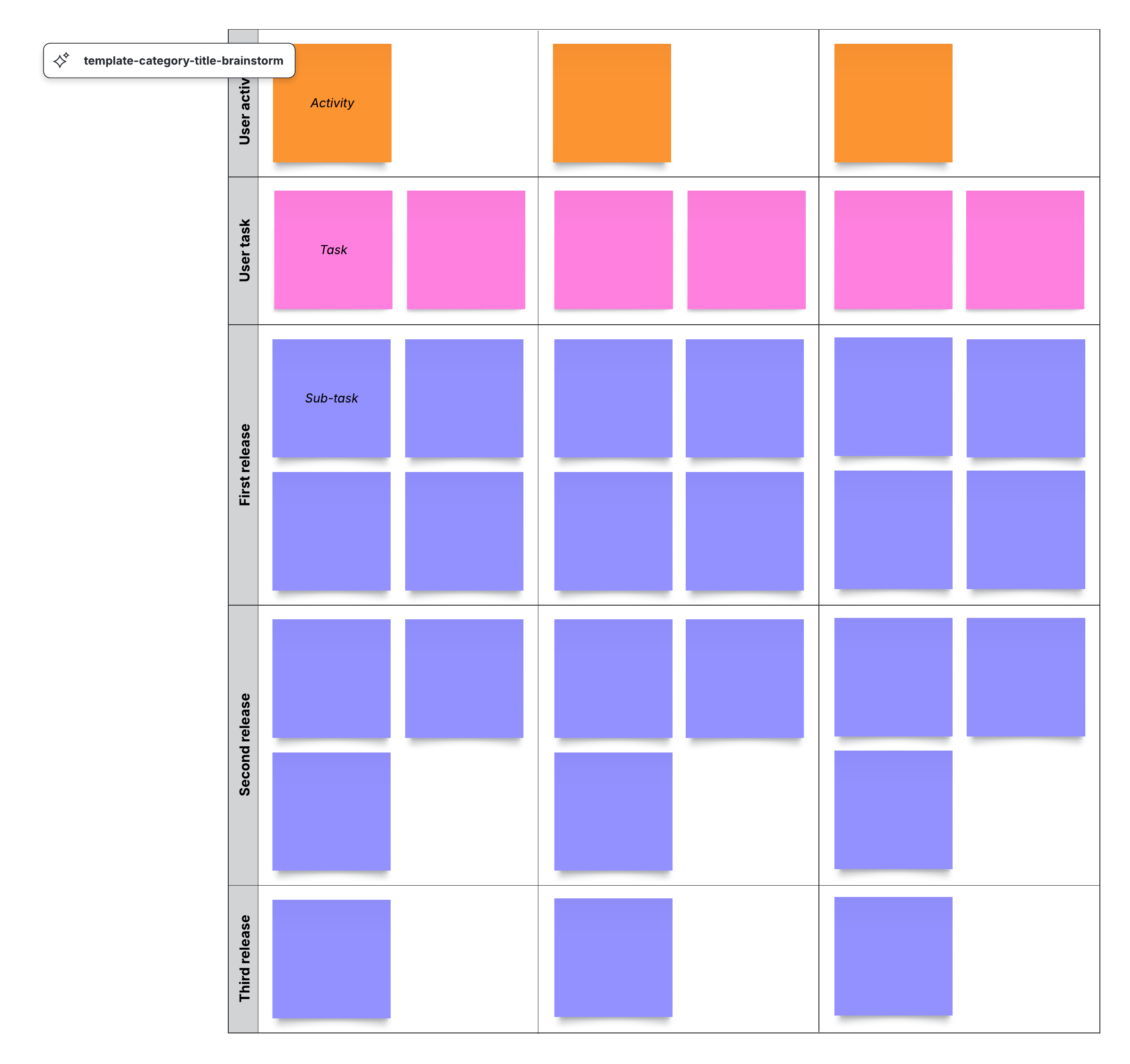 Open this template and add content to customize this user story map with swimlanes to your use case.