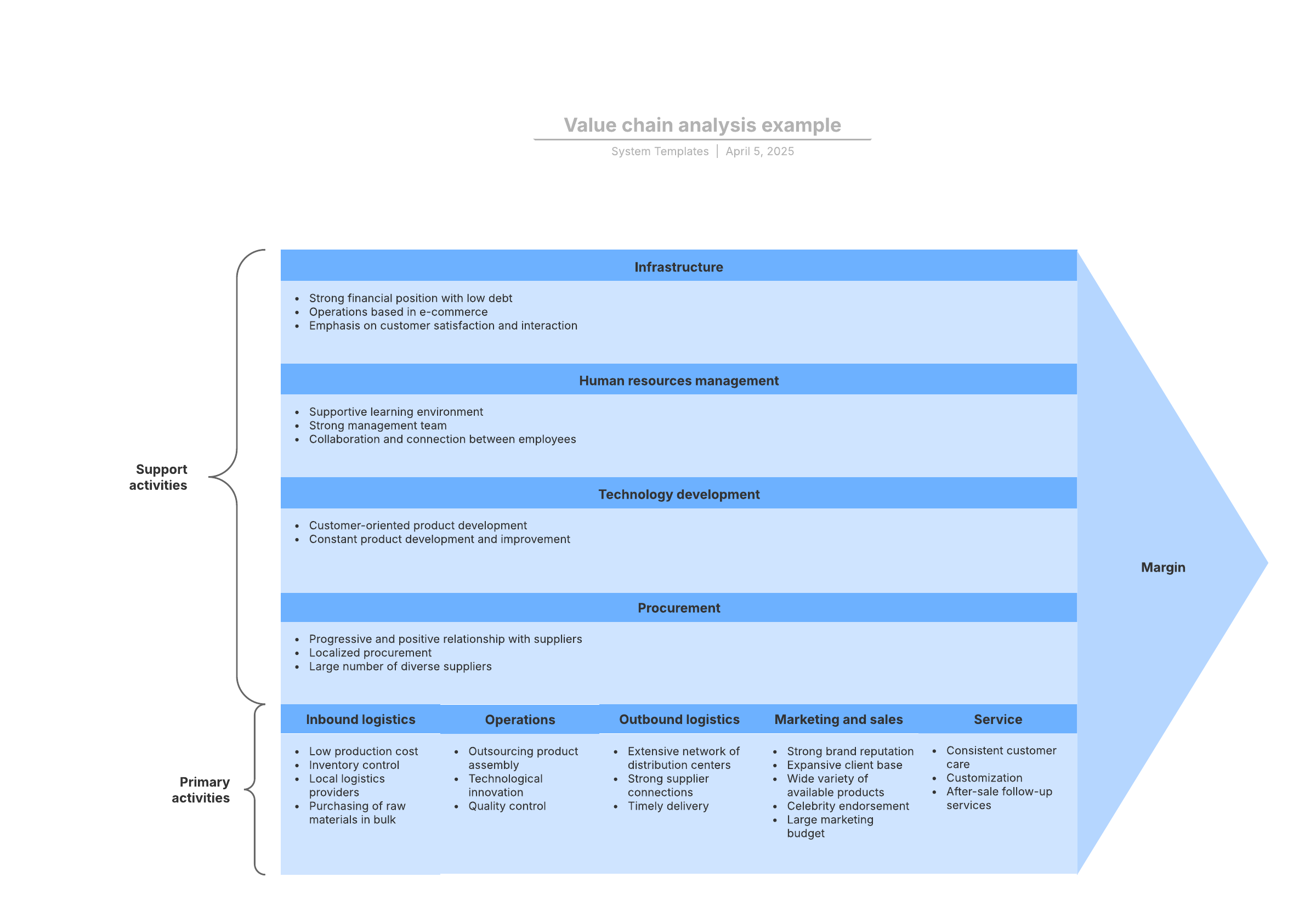 Open this template to view a detailed example of a value chain analysis example that you can customize to your use case.