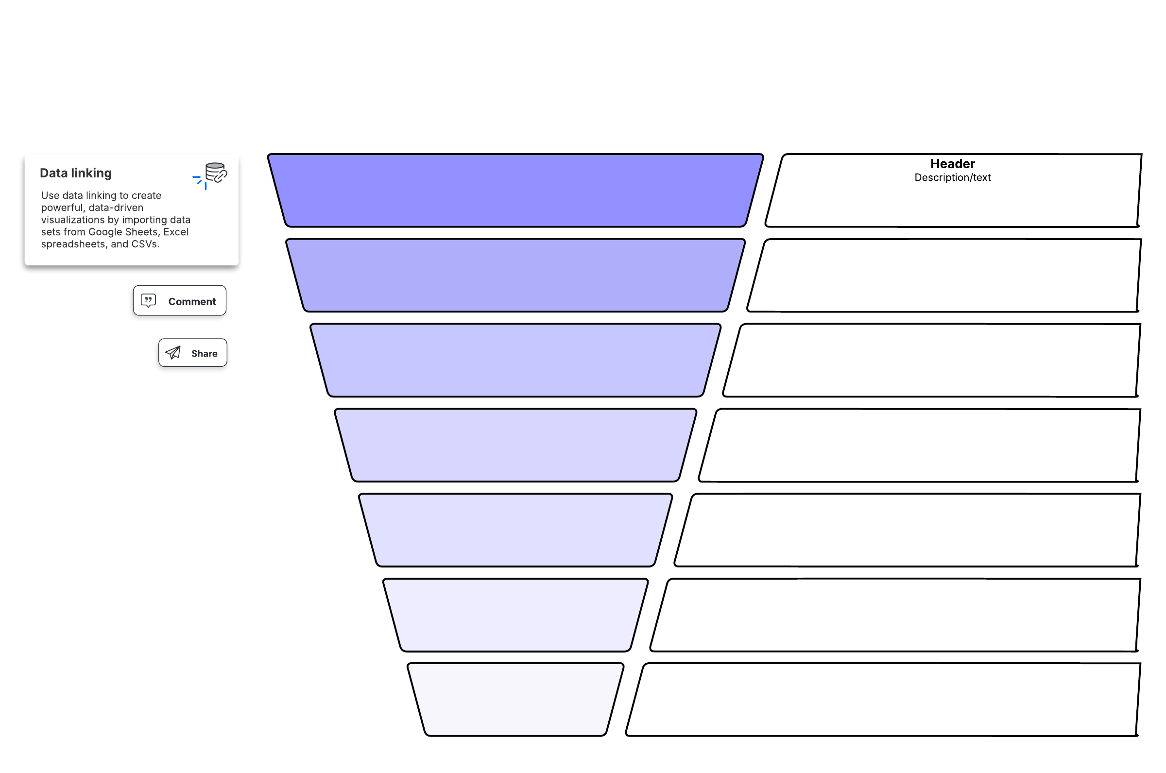 - Show the decrease in data as it progresses vertically from one stage to another.