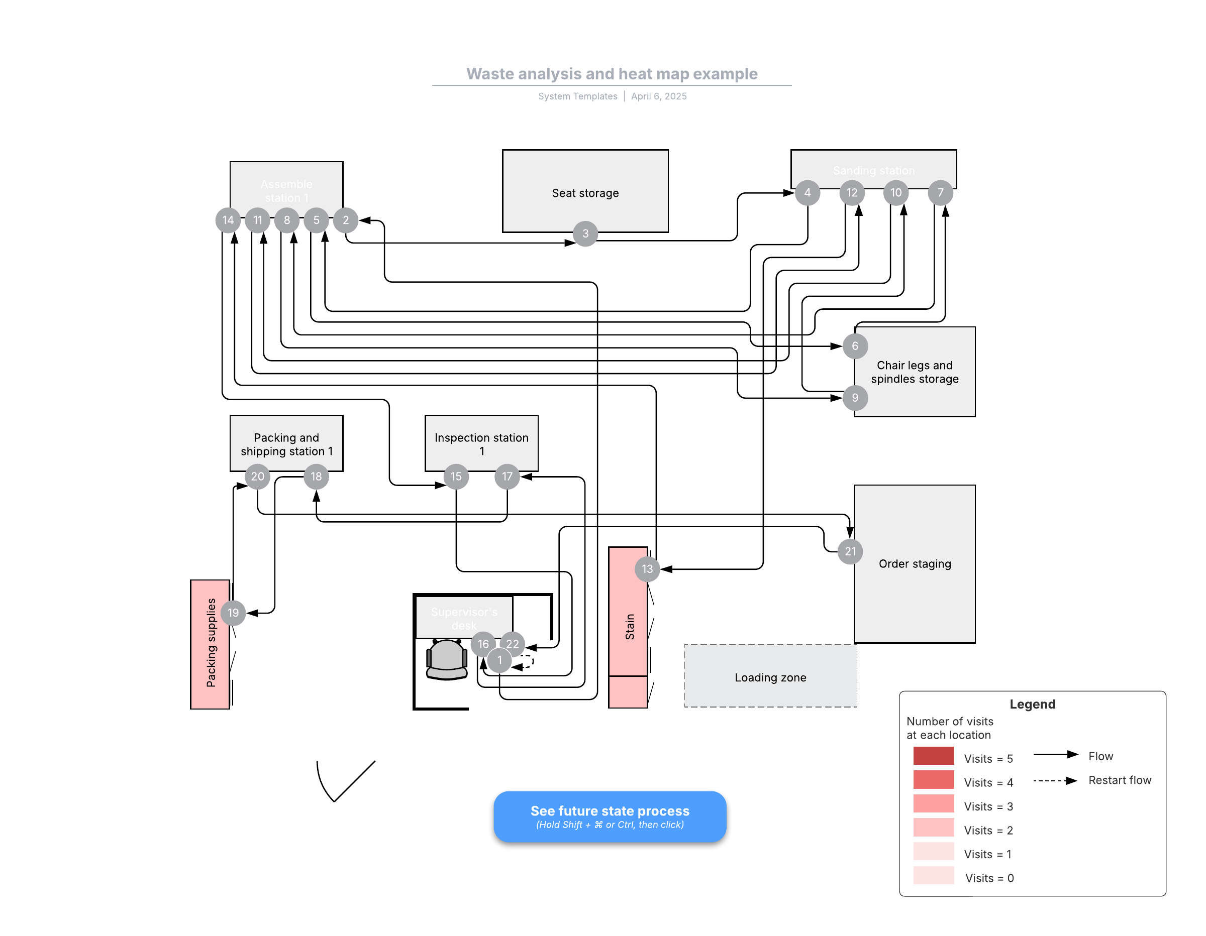 Open this template to view a detailed example of a waste analysis and heat map that you can customize to your use case.