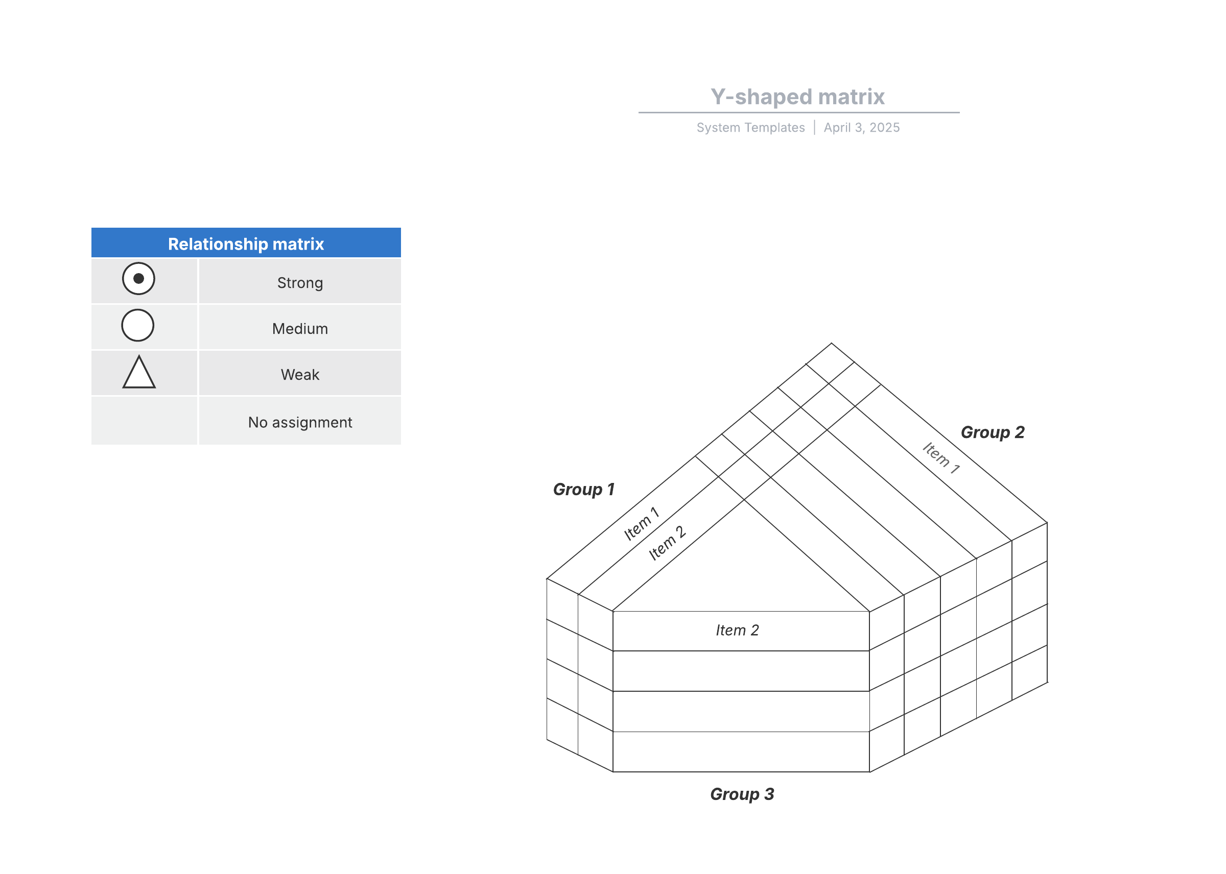 Open this template to view a detailed example of a Y-shaped matrix that you can customize to your use case.